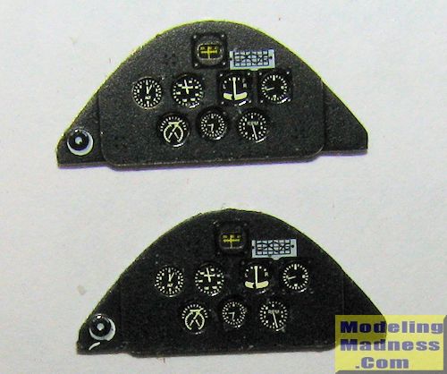 This next set from Yahu Models of Poland is for the Revell 1/48 PT-17 Kaydet kit. There are two identical panels, one for the front and one for the rear. Like other sets this will require the removal of previous detailing to provide a flat mating surface. One thing that is difficult to see in the images is that the image faces are glossy while the surrounding panel is a sort of crinkle finish, something that was very common in the 1930s and 1940s. These might also work on the Lindberg kit, but again, no promises. The addition of this set will really make your kit's cockpit come alive.