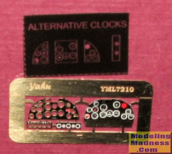 This set from Yahu Models of Poland is for the PARC/Amodel 1/72 IAR-81. The set provides a couple of options. You have the panels and you can either attach the pre-painted instruments behind them, or you can use the acetate sections. I'm not sure why anyone would not want to use the nice colored instruments but it is nice to have that option anyway. The center section of the main panel is at a different angle from the side sections and the instructions show you the proper angle for this.