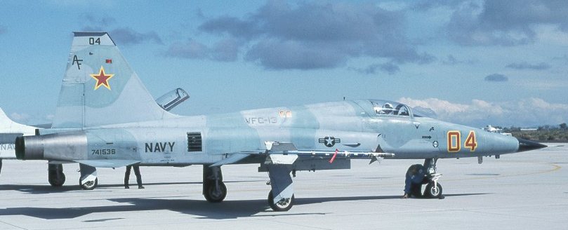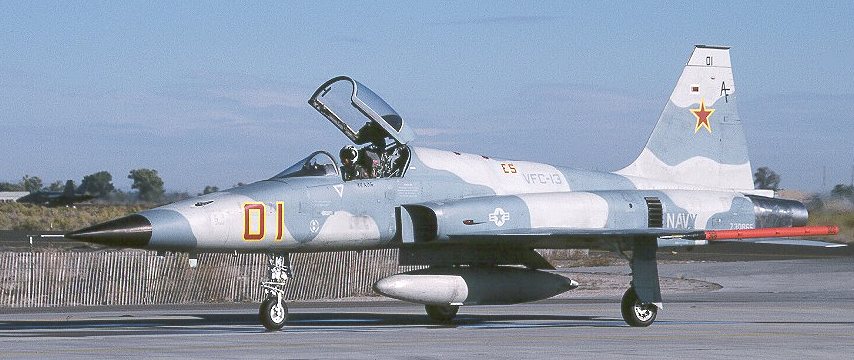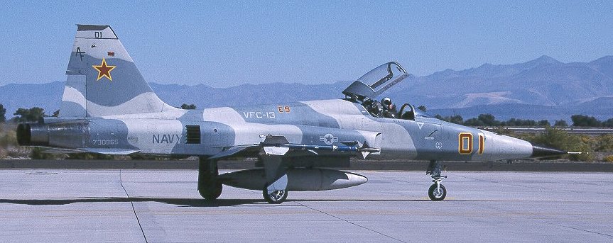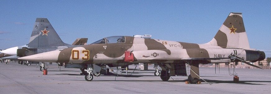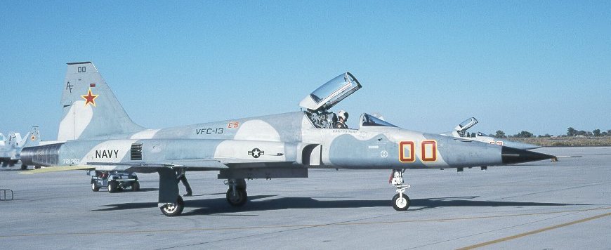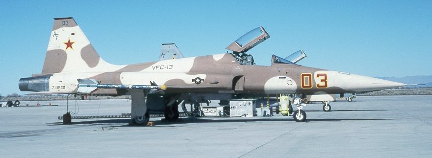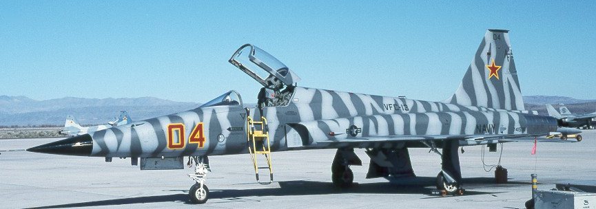 Another ex-USAF a/c with the standard USAF/early F-5 options. In the first picture, dated 4-30-99, the a/c is painted in what looks to be a Dark Ghost Gray and blue scheme that does not appear to wrap-around the underside. Less than a year later on 4-3-00 it was painted in the tiger stripe scheme. The colors look to be Dark Ghost Gray, and Gunship Gray, and do wrap-around.