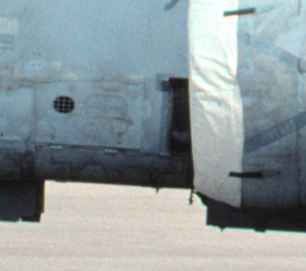 And now you know. There is also a third chaff/flare dispenser that is located between the small wheel well doors.