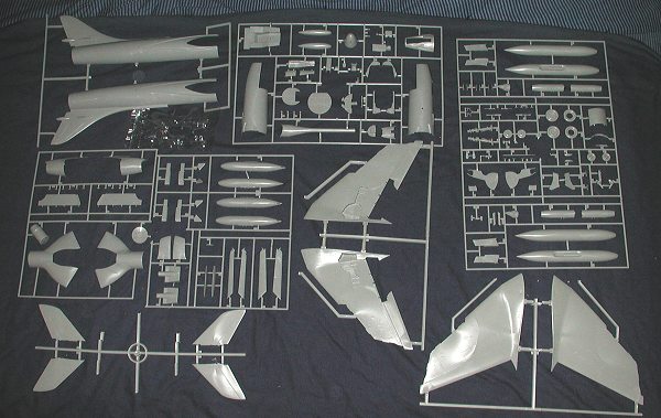Detailing is excellent, as one would expect from a modern kit of this size. There cockpit is well detailed as are other areas of the kit; wheel wells, speed brake well, intake. The modular design of the kit leads me to believe that other versions were in the works such as a two seat trainer and earlier variants such as the F.6 and F.4. You can see this in the separate nose section, wing leading edges and tail cone. Options on the US version are limited to drop tanks and rocket pods for things under wings. The canopy can be displayed open should one desire. The kit can also be built wheels up, but you'll have to build a hefty display stand for it.