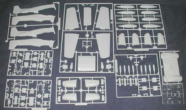 Modelcraft is more well known for reboxing other folks models. This kit is one that they had done specifically for them and it is still the only 1/48 F-82 that is widely available. It was done in three versions, the F-82B, F-82E and F-82G Night Fighter. The sprues for the B and E versions seem to be the same with the G having the radar pod as extra.