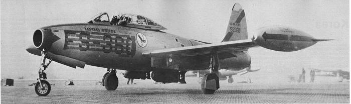F-84E of 136 FBG. Markings are in red. Note braced canopy that was installed