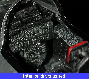 was pretty, I still had a considerable number of bits to add to it. First, I drybrushed the interior to bring out any detail that was there. At this time,