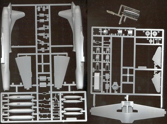 Thereis no intake or exhaust trunking, but the intakes should fit well and there is ablanking plate with a compressor face on it for the exhaust. There are nomarkings on the wings showing where the rocket pods are to be attached, but theinstructions show them to be 45mm out from the fuselage. There are four speedbrakes that you can display open or closed. I suggest finding images to see ifthese are normally open on the ground or not. The thick plastic canopy can bedisplayed open or close. Mine came without a windscreen and several letters toEmhar did not result in a replacement. Fortunately a very kind reader sent me anew clear sprue and I am most grateful for his kindness.