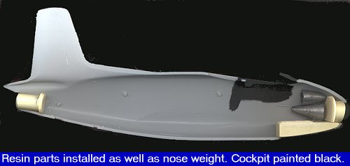 forward fuselage for weight so a couple of fishing weights were glued in place