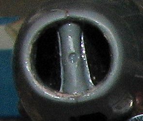 The kit comes with separate intakes, which is a nice addition, but leaves one to have to use the back of the cockpit for weight. The two side intakes are made of two pieces which are to be glued together and then glued to the inside of the nose just behind the intake ring. For those who want to remove the seam between the ring and the intake, I would suggest gluing just the outer portion of the intake, taking care of the seam, then gluing on the inner intake section.