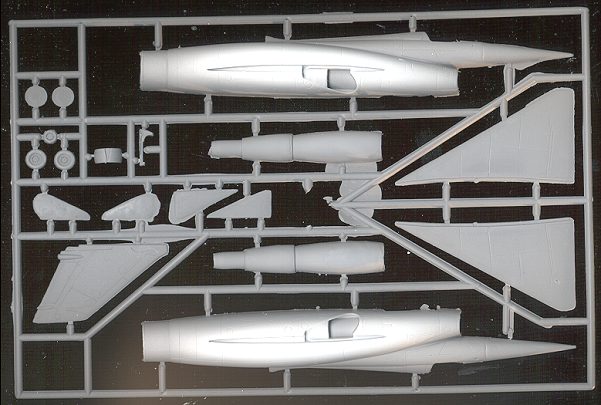 The kit comes in the usual F.M. box with a great box art showing an early Griffon II in flight from its most photogenic angle. Face it, the plane really is not a looker in any sense of the word. However, it is the kind of aircraft that I like because it is weird and experimental. The French put a lot of effort and testing into trying to get a viable ramjet powered interceptor. The theory was good, but the end result is that ramjets are jut too fuel thirsty and require some other mode of power to get them to operating speeds.