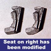 black with green cushions and other bits and pieces highlighted with various paints. Ejection handles were made from pieces of brass wire and properly painted. After which it was carefully drybrushed with aluminum to show wear. Then they were tacked to the interior with a dab of superglue to see if the canopy would fit over them. As luck would have it, they were too tall! Well my options were to lower the floor or shorten the seats. I chose the easy way and filed the bottom off until the canopy fit reasonably well over them. The seats were then permanently glued and the canopy attached using 5-minute epoxy. The fit is not a great one, and I do wish that Aeroclub had included a spare so I could have tried again, but it is presentable, albeit no where near good enough for a contest.
