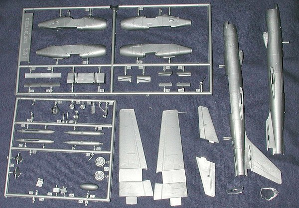 Too bad as these are, for the most part, not that bad at all. They have engraved panel lines (albeit a trifle on the 'heavy' side) and fairly good detailing for the size. This kit had no problems with sink areas, flash or ejector pin marks, even on the one-piece wings and horizontal stabilizers. There is even a bomb bay with doors that can be displayed open. The cockpit is basically a seat and the wheel wells have no detail. However, we are talking 1970s here on this one.