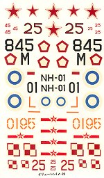 Instructions are totally in Japanese with several exploded views showing construction of the model and a photo of some Polish Beagles in flight. All of the decal and color info is on the back of the box. Most IL-28s were in bare metal or aluminum lacquer, though one of them is in green upper with light blue undersides. Decals are still nice and white with no yellowing, even after all these years. Markings are provided for a Russian, Polish, Indonesian, Finnish and Chinese plane. With some 'make your own' decals, other, more exotic IL-28s like those from Egypt or Nigeria can be done.