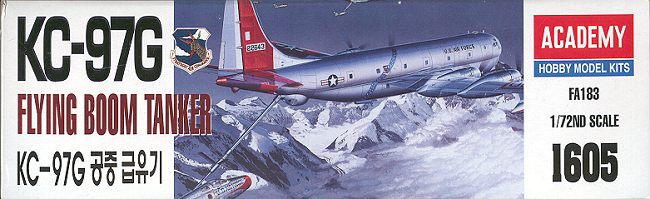The decal sheet is quite large andvery colorful. It gives markings for two aircraft. The main difference betweenthe two being the markings on the wing tanks and one has a white cabin roof.Both are natural metal with red 'arctic' markings on the wings and tail.Actually, I think that KC-97s were painted an overall aluminum instead of theirbeing natural metal. As with the 377 kit, a lot of vents and intakes are decalsrather than these items being molded into the plastic. Guess it works ok, butsince I haven't actually built any of these kits, I'm not sure how it well itworks. Separate from the instructions is the decal and painting guide for theaircraft. The only thing I can see is that the blue for the SAC banner may be abit too light, but it looks just fine to me. Academy decals are supposed to bepretty good, but again, I have not built a recent Academy kit to be able totell. Bottom line is that it looks like a great kit. A big onetoo! With the release of this and the C-97, that only leaves the KC-97L, most ofwhich were used by the ANG. I guess that one will come out here in a few monthsafter everyone has had a chance to pick over this kit! I'd liketo thank a friend in Korea for sending me this kit so that I didn't have to paya fortune for it. Believe it or not, this kit sells for about $20.00 in Korea! Review copy courtesy of me and my wallet! If you would like your product reviewed fairly and quickly by asite that has over 900 visits a day, please contactme or see other details in the
