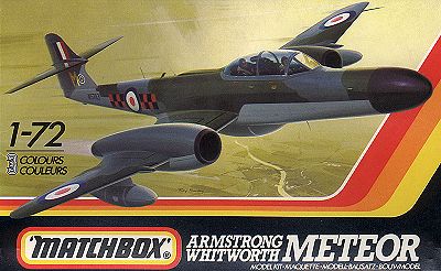 Matchbox's kit for the night fighting Meteors is very straightforward. Molded in three colors with raised panel lines and minimal detailing, the sprues show almost no flash but a large number of sink marks. This particular kit was purchased from the first production run in 1985 so the sink marks are endemic with the kit. This is the third of these kits I have built and they are all have similar characteristics. Fit of the parts is pretty good, although you will find yourself using filler on most joins; again, not uncommon with Matchbox kits.