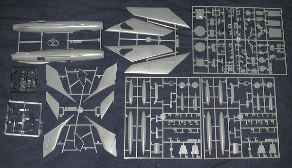 For optional bits, you have a pair of canopies for open or closed positions, optional fuel tank sizes, the speed brakes can be positioned open or closed (though you will have to make the actuating pistons), two different fins, and optional radio antennas. The photo-etch is mostly for the interior, though there are compressor facings and one of the antenna options in metal. You also have to make the exhaust pipes out of plastic card. I mean really!! For $40 retail, you'd think those would be provided!