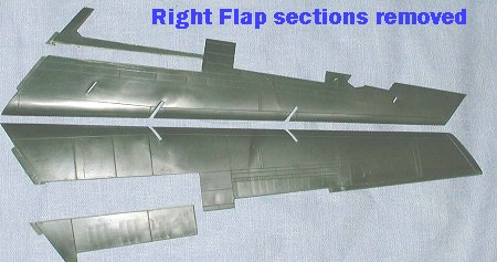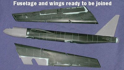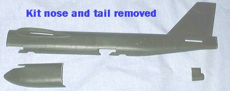 As with all conversions, the first thing that needs done is some serious cutting and hacking. In this case, the nose and tail section of the B-52 fuselage need removed (fortunately, these are along panel lines to make it easier) and on the wings, the right hand flap needs to be taken off. Again, the flap is along a panel line so removal is quite easy.