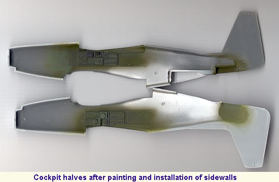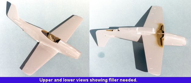installed in the back of the canopy area. Then the instrument panel was reinstalled in the cockpit. Next the glare shield was installed. Naturally, it didn't fit! Grrr! Not only was the instrument panel apparently too high, but the shield appeared to be too narrow. I got the best fit I could and then installed the gunsight. Before any of that had dried, I test fit the closed canopy. The canopy was too narrow for the space it has to fit. Grrrr! As you can tell, the Grrr factor on this kit is rather high. While I don't expect Tamiya like parts fit from limited run kits, I do expect them to be pretty close. Again, I was left wondering if the people who produce these kits actually build them after the molds have been finalized!! Thankfully the canopy is not very clear and is a bit distorted, so it was with this in mind that the closed canopy option was chosen. The canopy was attached with non-fogging superglue and it was time to start filling and filing to get the darn thing to fit!! After three applications of filler, it looked about ready for some paint.