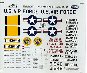 Instructions are well done and give references to Testors paints where appropriate. Two options are give for markings. One is an SEA camouflaged version as shown on the box and the other is a civil helo in white. However, the markings on the sheet are not for either of those and are for an ADC grey version as shown on the box art. This means no placement guide for most of the markings as you'll just have to figure out where some of that stuff goes. Bit of a cock-up, eh? Decals are well printed and are done by Microscale.