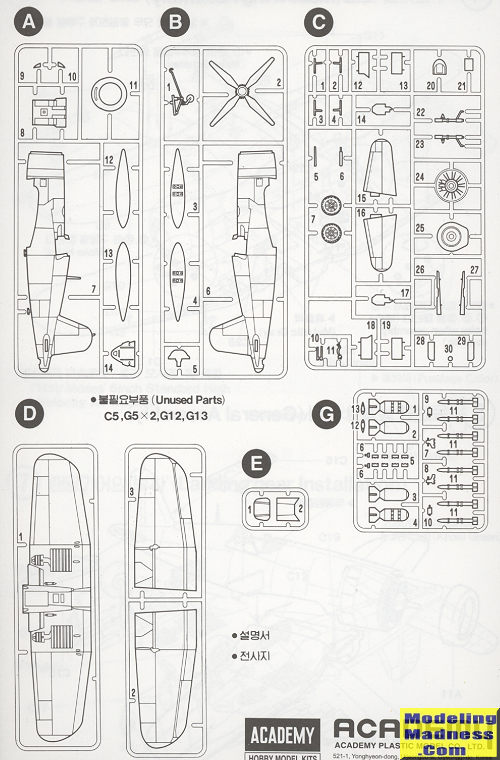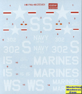 Instructions are well done with generic color information. Basically the two options are overall gloss sea blue with 'khaki green' used for most of the cockpit and the gear wells/doors. To be honest, I would think that the gear wells/doors would be sea blue as well. I looked at a lot of period photos, and couldn't really see anything that would indicate either way, but all the wing fold areas and usually gear legs were sea blue so one could easily assume the wells would be the same. Markings are for two planes. The box art plane is from VF-53 while the other option is a VMF-323 plane with no really unique markings aside from the tail code. Decals look to be well printed, and I'm sure you can find aftermarket if the kit options do not appeal.