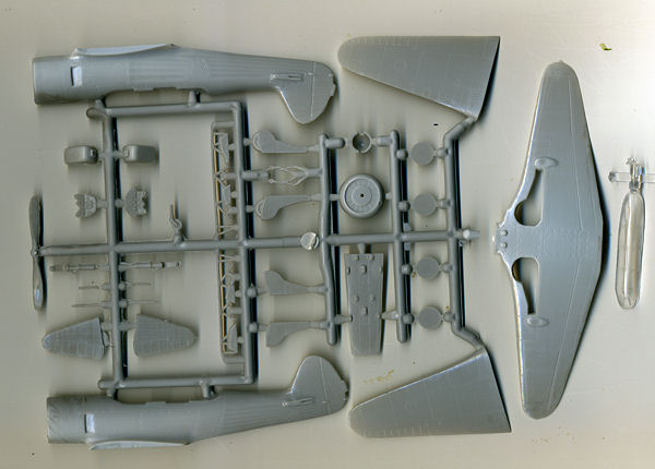 Aeroteam is a company that produced a few short run kit and may still be around for all I know. This is typical of the genre in that there is a single sprue with fine engraved detailing and with plastic that is very shiny on the engraved side. The inside of large parts has ejector towers that will have to be removed. Unlike many short run kits, this one has an injected canopy, a big plus for those of us who are hopeless when it comes to vac canopies.