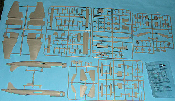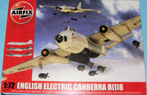 I know that most of us were very pleased to hear that Airfix was going to produce a series of 1/48 Canberras and were hoping that these would be reduced to 1/72. Well that has been going on and the B(I).8 is the subject of their first release. Molded in the usual grey we have come to expect from Airfix, there are six grey and one clear sprue. The clear sprue has the canopy which was made as if it opened up like a jet fighter. I don't think this was the case as the instructions have a big X through an open canopy option.