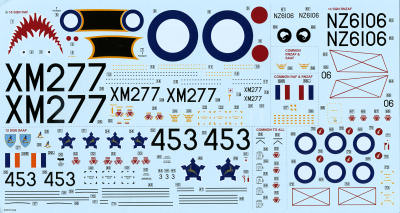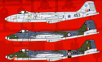 numbers. There are three schemes available. One is an RAF 16 Squadron plane from 1972 in the Green/Grey/Aluminum finish. Also in this finish is a New Zealand 14 Squadron plane from 1968. The third option is an overall aluminum painted plane from 12 Squadron, South African Air Force. This aircraft has yellow engine intake bullets. The decal sheet provides all the markings and data information. It is superbly printed and as good looking as any aftermarket sheet. I'm sure this is a result of Hornby's take-over of the company as one thing Hornby does well is to improve what it buys.