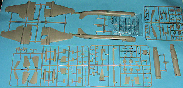 Molded in the usual grey we have come to expect from Airfix, there are six grey and one clear sprue. The panel lines are fine, though perhaps a tad large. One thing I did notice was a number of shallow sink areas opposite the alignment pins. This is most obvious on the wings so prepare for some filler work to level those out. The kit has a lot going for it. There is a full cockpit and nose interior section. Molding here is quite good and will satisfy most modelers. The seats even have belt detail molded in place. Crew figures are provided if you wish to use them. There are resin upgrades for those who want a bit more detail in this area. To keep it from tail sitting, you'll need to add 45 grams behind the cockpit section. This is quite a bit of weight for most models.