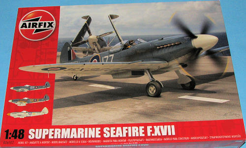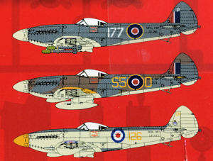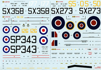ese are from 800 NAS in 1947 (box art) and the other with a higher fuselage demarcation line, is from 1832 NAS RNVR in 1950. This latter plane has the later roundels. In Extra Dark Sea Grey/Dark Slate Grey over Beige Green, with yellow bits on the wings and elevators, is an aircraft from the Air Warfare School, also in 1947. The Extra Dark Sea Grey soon faded to just Dark Sea Grey after a few months of exposure. The decal sheet is superbly printed by Cartograf so is as good as any aftermarket sheet. It also includes full data markings and a wing walk decal. Instructions are well done with easy to understand construction drawings, but still with only Humbrol paint numbers for most of the build, some colors need to be mixed.