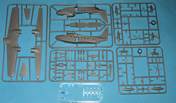 The kit has nicely done engines and one-piece nacelles. The landing gear is more than adequate for this scale. The main gear legs look to be rather thin, but once properly braced should be quite sturdy. There doesn't seem to be any gear up option, but making it so should be rather straight forward. For things under wings, aside from the requisite floats, there are two drop tanks and pylons, though these were not always carried.