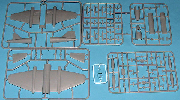 Continuing with their 1/144 Canberra series, we have the initial production US Canberras, the B-57A and RB-57A. As these are basically identical to RAF Canberras, it is no surprise that the sprues are the same as in their earlier offering. This kit is highly sectional with separate nose, wing section and tail section. This is to allow all the different variations of the type to be built by simply swapping out what is needed. Typical of most 1/144 kits, the cockpit is very basic consisting of little more than a seat, but then, little can be seen in the cockpit of a Canberra anyway. It leaves plenty of room for the inevitable nose weight. The center section has optional bomb bays. One with the door closed and the other with it open an showing a load of six bombs. The plastic is nicely formed without any obvious molding glitches aside from lower section of one of the tip tanks, which has a considerable number of sink areas. The clear canopy is quite thick so perhaps it is best that there is little cockpit detail. The kit can be built with or without the tip tanks, but these were most often seen with them.