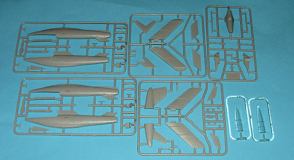 As you might expect, Amodel has used the same fuselage and canopy pieces for both aircraft, providing different sprues for the wings and tail sections. Both fuselage sections have the pylon to which it was attached the the Pe-8 molded in place so those will have to be cut away. For the earlier 5-1 aircraft, the tail will have to be cut away so that the new one can be glued in its place. Both fuselages come with the gear bay doors closed so some cutting will be needed if one wants to portray these on their landing skids. The instructions provide full information on doing this.