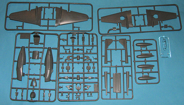 This particular Vampire kit from Amodel covers most of the popular variations of the aircraft. Molded in Amodel's typical low pressure molding, the detail level is actually quite good with nicely done engraved panel lines. There is some flash and the lower gun trough piece had some rather deep sink areas, but that is about it.