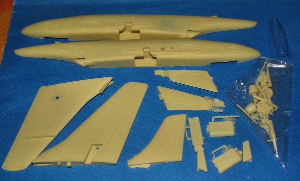 These garage kits always provide a bit of a challenge to the modeler, but when you reach the level where you are building kits like this, you have to have the skills needed to correct what you find. It is the nature of the beast that you'll find no two kits exactly alike. Some will require a bit more work than others. This particular one suffers a bit more than the norm from molding glitches. For instance, the strut mounting holes have gone all the way through the wing. There are quite a few air bubbles on the tip of the right wing, the left fuselage half has a section that is very thin and the nose gear well and interior have a lot of additional gunk in it that will have to be chipped out. All of this can be easily repaired using either super glue or epoxy filler and then carefully sanded smooth.