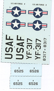 Instructions are unchanged from kit #1 with a history and photo and exploded view and parts list on one side. The other is a painting and decal guide with a nice three view. I should point out that the nose anti-glare panel shown is for the second prototype. The first prototype has a more straight line to it. Markings are provided for both prototype aircraft and differ only in serial number. The sheet for the YF-93A is provided where you can glean the insignia. Apparently the aircraft never carried the USAF or US Air Force markings. The initial rollout of the first prototype did carry the 'McDonnell XF-88' logo and would have been nice to have.