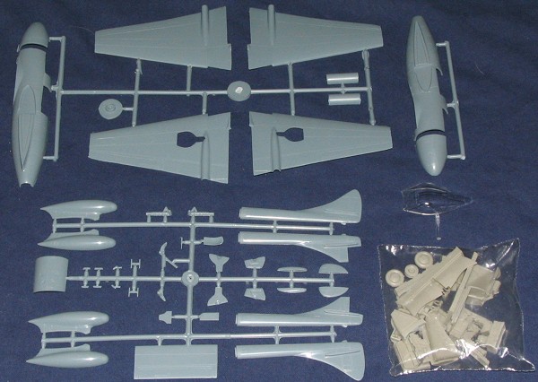 All twin seat Vampires have somewhat pointed rudders and this is no different. There are resin stubs for the outside of the tail planes. A pair of drop tanks are included and while not the norm for the two seat version, it wasn't that uncommon. There is a thick but clear one-piece canopy to top things off.