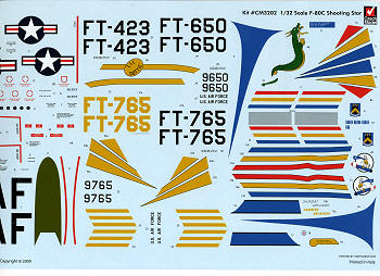 Speaking of decals the sheet that comes with this kit is huge. It fills the bottom of the box and I could not fit it all on the platen of my scanner, so chose to highlight the unique markings. Czech Model includes the upper nose anti-glare panel as a decal so no worries about masking and painting this difficult shape. You are provided a complete data markings suite as well. Markings are for three planes. One is the box art aircraft from the 51st FIW in March of 1951. This one has the smaller tip tanks with blue nose and tail sections. This will need to be painted as will the tank tips on the next option. The builder will also need to paint the nose of this aircraft in blue to match the decal. Next is the 8th FBG wing commander's plane. This and the other set of markings have the larger Misawa tip tanks. The third set of markings is for 'Li'l Dottie' assigned to the 80th FBS with yellow markings. The intake and splitter plate on this aircraft appear to have been in yellow as well so some painting will be required for this. All three options are very colorful and the decal sheet is superbly printed by Cartograf in Italy, which seems to have all the kit decal business it can handle!