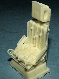 molded in the Czech Republic. Probably by MPM, but it really doesn't matter. This is a full multi-media short run injected kit with a nice color photo etch fret for the instrument panel and a few other small items. It also includes a bag of resin parts that includes the cockpit seat, two optional sets of wheels, one with radial tread and one with cross-hatched tread and each of those with different wheel designs, and some other small parts. The seat is particularly nice as you can see.