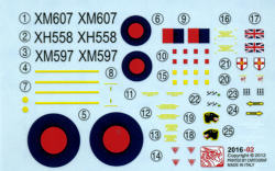 The B.2s were adapted into several other variants, the B.2A carrying the Blue Steel missile, the B.2 (MRR) for Marine Radar Reconnaissance use, and the K.2 tanker for aerial refuelling. The Vulcan was also used in the secondary role of conventional bombing near the end of its service life in the 1982 Falklands War against Argentina during Operation Black Buck. One example, XH558, an aircraft depicted on this kit's decal sheet, was recently restored for use in display flights and commemoration of the employment of the aircraft in the Falklands conflict.