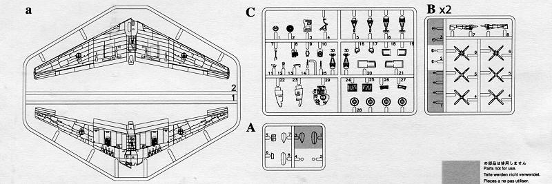 The small decal sheet provides insignia, wing walk areas and a serial number for one plane. If you recall, the YB-49 left off the serial decal so it is nice that one is included this time. Below is a list of features from the Dragon folks: