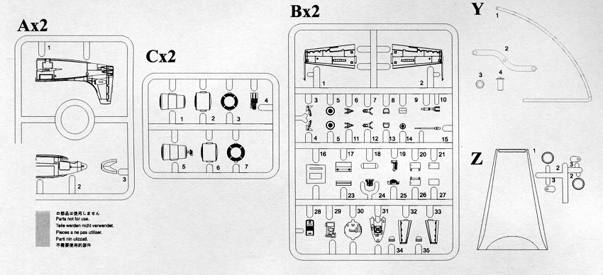 Instructions are a single sheet of paper with parts on one side and five construction steps on the other. Normally, I would photograph the sprues, but since clear is such a pain to photograph properly, I used the parts diagram from the sheet. The nicely done decals give the markings for both aircraft. To me, the blue surround to the insignia looks too thin, but that is me.