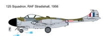 Instructions are well done with Gunze and Model Master paint references. Both options are painted in the standard green/grey as used by the RAF in the 1950s. The box art option uses the upper side grey for the underside, just like late war Mosquito night fighters. This is a plane of F1 Wing in Sweden during 1959. The other is an RAF plane of 125 squadron in 1956. The decals are nicely done and include a bevy of stencils. There have been aftermarket sheets that include the Venom NF if you look a bit for them.