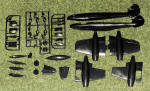 The cockpit consists of a floor, seat, stick and pilot. At the time, the detail level of the pilot's office was not considered a priority so most kits had quite Spartan interiors. Wheel wells are not boxed in for the main gear and quite shallow for the nose gear. No indication of weight is given but you will need to pack in a considerable amount to keep it on its nose. A blanking plate is provided for the engine fronts with the exhaust remaining open. The only real options are fuel tanks. One for the lower fuselage and a pair for beneath the wings. Holes for the latter are already drilled out on the lower wings. A once piece canopy that is rather thick is provided.