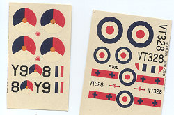 Instructions are typical Frog in that they are well done and provide no interior or well color information. In fact, no color information is given at all aside from the overall aluminum recommendation of the decal placement guide on the bottom of the box. Markings are given for two aircraft. One is a Dutch aircraft from 323 squadron as shown on the box art. The other is from 263 squadron, RAF, both in overall aluminum. I do believe that this color was lacquer paint and not unpainted metal. For some reason, the previous owner cut the decal sheet in half. The old sheet had also curled up into nearly a cylinder in the 30 years or more since the kit was produced. That's why the rather odd juxtaposition shown.