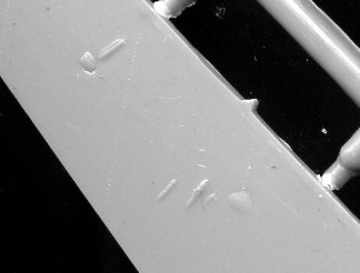 Panel lines are nicely engraved and not 'soft' as one would think. There also seems to be an attempt at a screw-head pattern on many of the panels, but it is somewhat inconsistent and would probably disappear under the first coat of paint anyway. As it is short run, I found some instances of detritus on a few parts, though it was limited to the two images shown. That on the wing will be easy to clean up, but the nozzle part will take more effort. I also found one of the wing skids to be seriously deformed as if it was pushed in while still hot. A nice touch is that the control surfaces are molded onto one wing half, allowing the trailing edges to be nice and sharp.