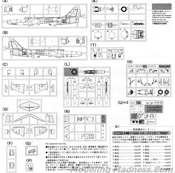 Instructions are typical Hasegawa and provide Gunze paint references. There are three markings options. First is from 1970 with a da-glo tail and wing tips, grey wings and aluminum fuselage. Next is from 1980 with an all white upper fuselage and wings, along with a light blue lower fuselage. This blue will need to be mixed. The big blue stripe is part of the decal. The last is from 1985 shortly before the type was retired. It is all white with the big blue stripe along the side as shown in the box art photo, taken at NASA Dryden's aircraft display park. The very large decal sheet fills the bottom of the box in length and is too long for my scanner. It is printed by Cartograf so is of very high quality.