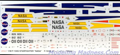 This is another nice boxing of Hasegawa's 1/48 Starfighter. If you have ever built thiskit, you know how nice it is and with the usual careful building, you'll have a real beauty. Despite the age of the markings, I would bet that they'll still be viable. Another option is the old Victory Productions F-104 sheet that offers several slightly different NASA Starfighters.