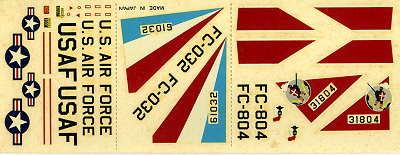 The kit's instructions have a parts breakdown, four rather simple construction steps along with a history and painting diagram on the other side of the sheet. Markings are provided for two aircraft. One is the box art plane from the 68th FIS based at Itazuke AB in Japan, and the other with the 32nd FIS based in the Netherlands. Actually, the instructions never really tell you what color to paint the overall aircraft, but these planes were either aluminum paint or ADC Grey. There are red band decals for the 68th FIS aircraft. As you can imagine, the years have not been too kind to the decals, though they could be salvaged if one was so inclined to try.