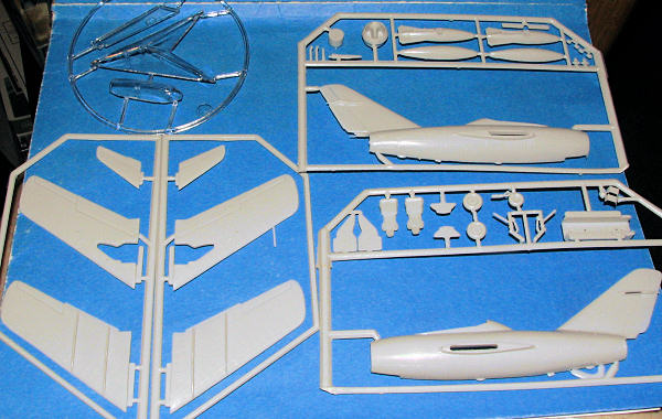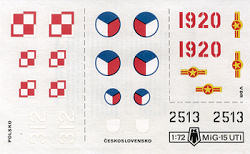 Instructions are on the typical news-print type of paper with basically a pair of exploded diagrams with one detail drawing for the cockpit section. Most is easily understandable, though a few of the placements are a tad vague (like the cockpit tub and blast screen). There are instructions and history in Czech, English and German. Markings are for three planes. One is the box art aircraft of the Polish AF, then one from the North Vietnamese AF and Finally, a Czech version; the last two in unpainted metal. Decals are fairly well done, but the yellow on the Vietnamese version is well off-register. Not a real problem as the general lack of opaqueness of early KP decals makes them pretty much un-usable, and it would behoove the modeler to search out aftermarket replacements. Fortunately, most are just insignia and numbers. For the Czech version, you'd have to paint the squadron badge on the white background provided, not something most of us are good at doing.