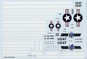 The instructions are clearly drawn and look very much like they could be original as there are written construction steps in addition to the drawings. This is brought out as the instructions suggest providing color information as well as the part number. Originally this was molded with the missile in red and all the rest in yellow. The modern boxing is all white plastic as you can see from the image. No color and markings diagram is provided, but there are a considerable number of images of a built up model to use as a reference. The decals look to be quite well done and are in register. The yellow bits, however, seem very transparent and those on the SAC badges disappear into the white background.
