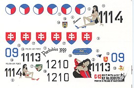 The instructions are really quite good and are of great detail. Paint colors are provided in FS 595 and various paint companies so finding colors for this should be a snap. Markings are provided for five aircraft. Three of them are Czech, including two with nose art. The artwork is pretty basic compared to the real thing so many will probably skip them. These three planes are in unpainted aluminum. A Slovakian aircraft is also provided in unpainted metal. However, these were eventually painted a nice gloss grey so perhaps that would be more appropriate. The fifth scheme is a 2-tone grey over light blue version from Poland with their low-viz insignia (which is white so you can't see it on the decal sheet). Decals look to be fairly well printed and semi-gloss. It will be interesting to see how they work out.