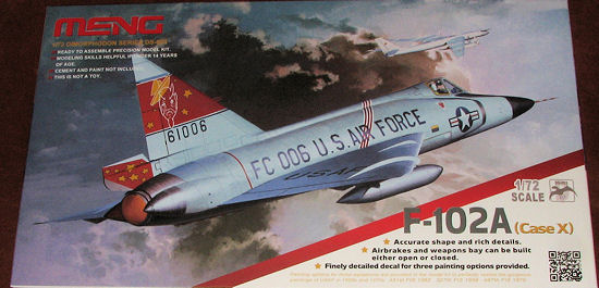 For many years 1/72 jet modelers have been hoping for new tool century series kits. Sure, Hasegawa did them all as part of their initial batch of kits in the late 1960s and early 1970s, but those kits were pretty basic in terms of both internal and external detailing. Over the years, there have been better F-100s, F-104s, and F-105s, but the delta wing aircraft have not been forthcoming. This had now changed with the release of the new Meng F-102A with the Case X wing.